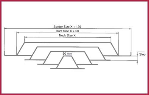 The relationship between different sizes of a diffusers parts is given below. While sending an enquiry or an order, please use this configuration to specify the dimension required.